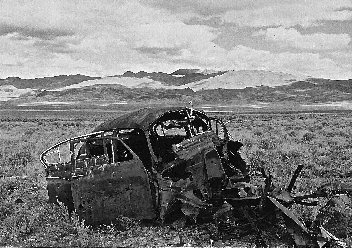 He courted her through the summer months and he called her Bonnie and she called him Clyde and they would drive together through the desert roads too fast in his father’s truck and they would stop at the end of some dirt trail and shoot tin cans with a Nambu pistol he’d taken from a Japanese officer and they made cheap picnics in the rocks and invented great capers they would pull together. In their talks they robbed banks in Reno and Carson City and they bought new cars with the money and made their way east, stashing money in desert ghost towns such as Botwick and Swansea, before crossing through into Utah and Colorado and eventually turning north. They dreamed of a cabin hideout in Ten Sleep, Wyoming, because she loved the sound of it, and they would winter there until the spring when they could break out of the deep snow and rain anew. They were famous fugitives by then and their parents were stolid but ashamed and so they would write long letters begging forgiveness on stationary pilfered from swank hotels. It was fun for them to talk this way and it was a secret life they shared and when their dates were over Del would drive her home, Charlotte snug beside him on the seat and them rolling slowly through the desert, the windows down for those summer evenings when the air is warm and the tempered light draws the subtle color from the hard land and the smell of the sage is most pungent.